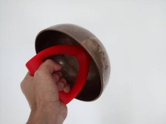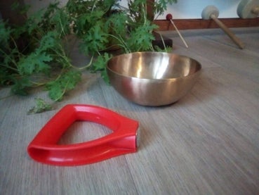 Ik heb een klankschaalgreep ontwikkeld. De Easy Soundgrip. Nu vraag je je misschien wel af waar die greep voor nodig is. En ik geef toe, je kunt die klankschaal natuurlijk ook gewoon vasthouden.